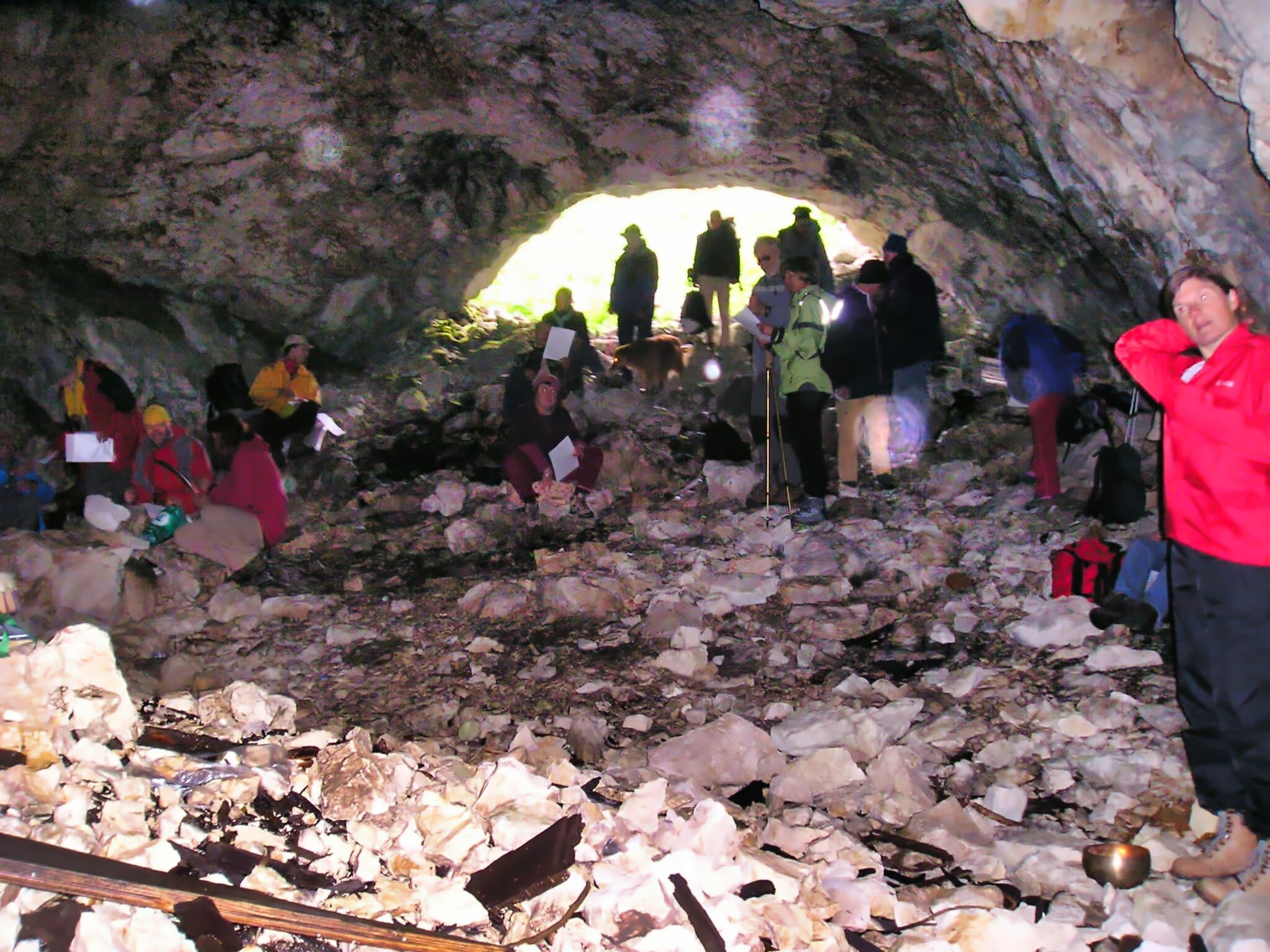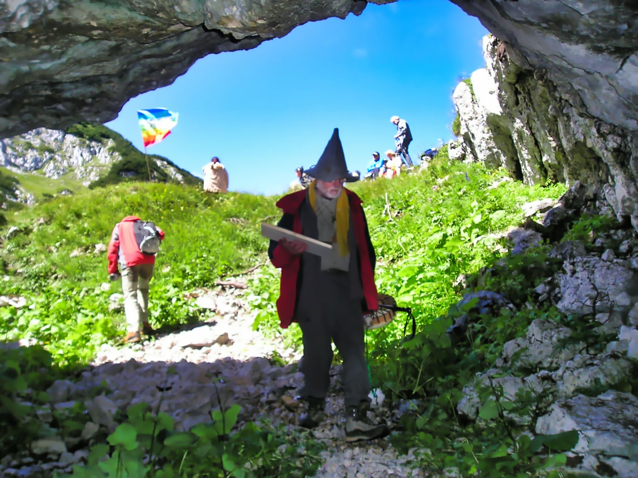 Schon beim Abstieg in die Scharte lichtete sich der graue Himmel etwas. Während der Zeremonie im Berginneren klarte sich der Himmel total auf und unser Rückweg war sonnendurchflutet und warm. Es schien, dass der Berggeist uns beobachtete, das Geschenk annahm und das Wetter transformierte.