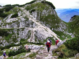 Der steile Abstieg hinunter zur Mittagsscharte forderte Trittsicherheit und Schwindelfreiheit und brachte mich an meine Grenzen. Auch in den Folgejahren war dieser Steig immer wieder eine Herausforderung und manch ein Pilger machte hier Stop und kehrte wieder um. Eine wahrhafte Grenzerfahrung - sogar im doppelten Sinn, da über die Mittagsscharte die Grenze zwischen Österreich und Deutschland verläuft.