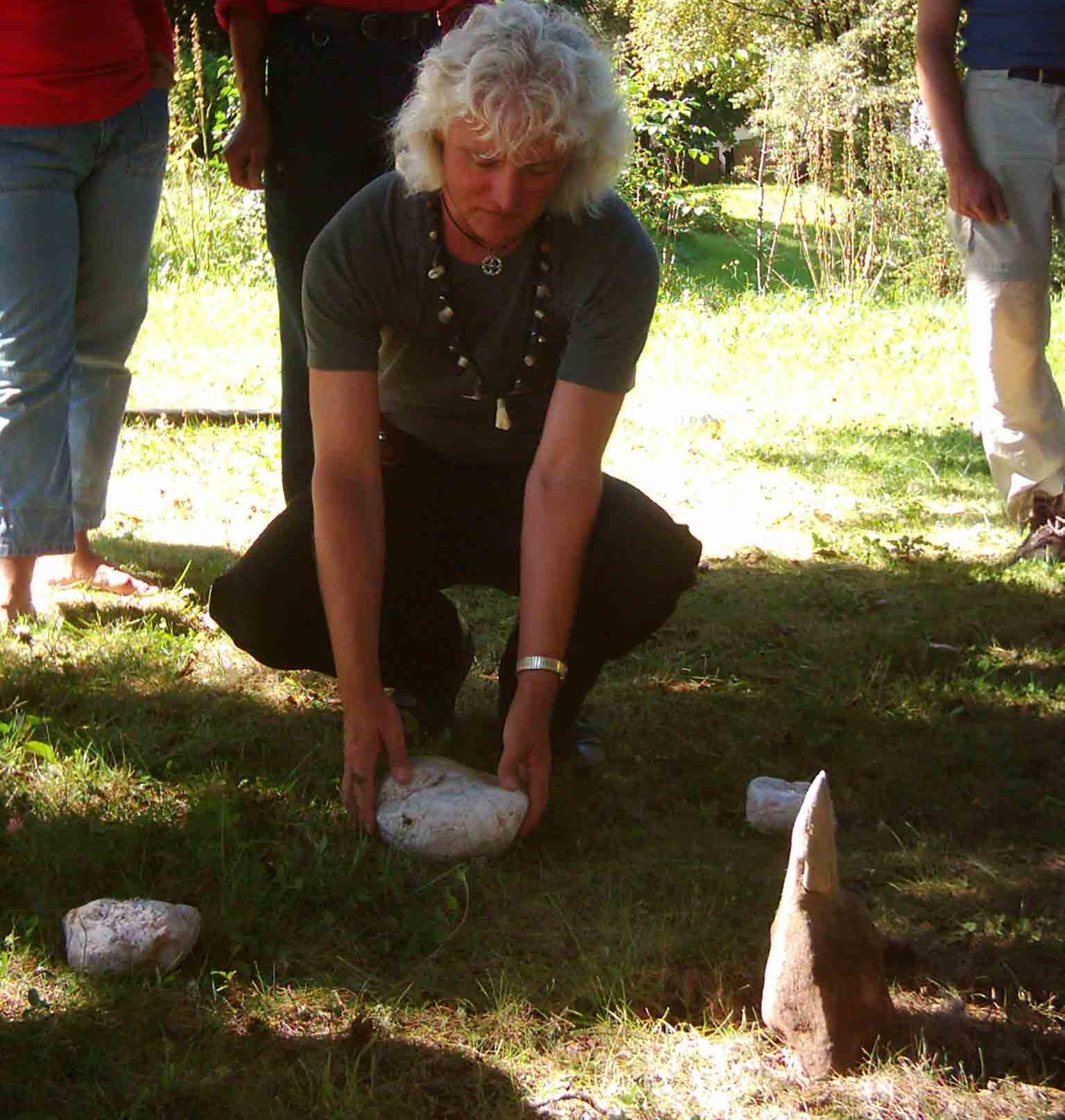 Steinsetzungen sind in der heutigen Zeit ein menschlicher Ausdruck neuer Erdverbundenheit. Als Lithopunktur bezeichnet der Pionier der Geomantie Marco Pogacnik diese Akupunktur der Erde. In der Bioregion Untersberg finden sich in den letzten Jahren zunehmend Steinkreise - meist in der Form des keltischen Rades (in Analogie zu den sogenannten Medizinrädern der nord-amerikanischen Natives) oder seit 2009 auch der Venusblume, die durch Werner Neuner initiiert wurde (Foto 6 Venusblume in der Grasslhöhle).Aber ich fand auch Hinweise auf archaische Steinsetzungen, vielleicht im Sinne eines Schutzkreises, wie auf der verfallenen Karalm (Foto 3) unterhalb der Mittagsscharte gelegen (siehe dazu auch mein Buch “Mythos Untersberg” 2011).