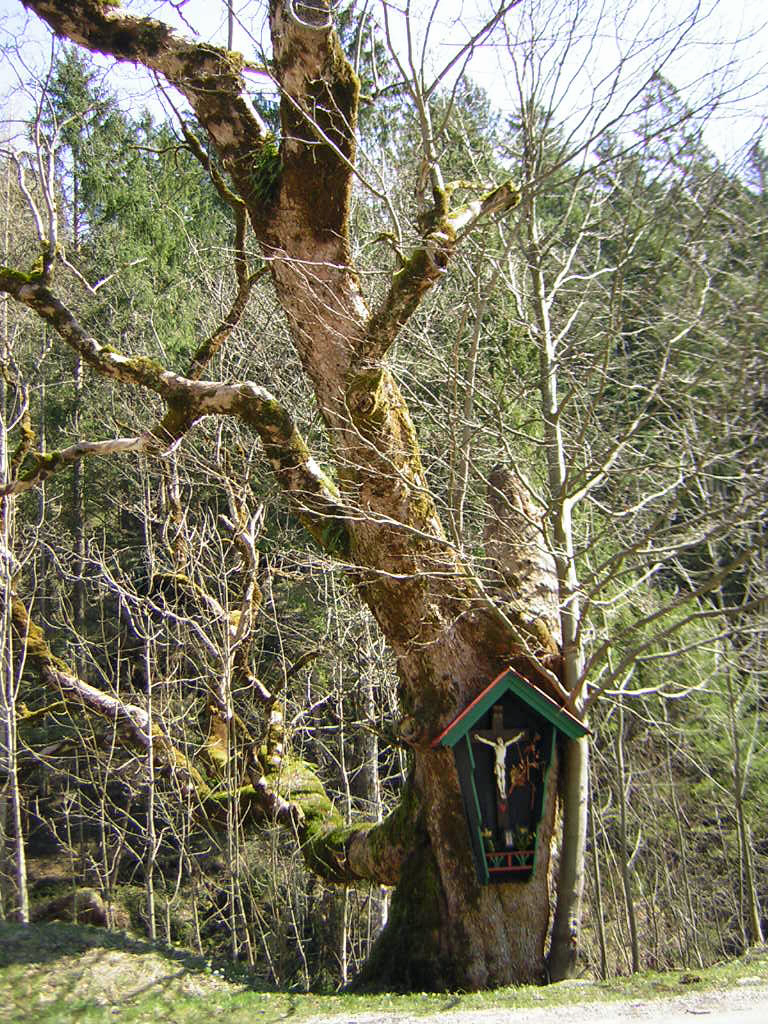 Rechts neben der Straße von Maria Gern nach Hintergern stand ein Baumheiligtum mit Marterl (Naturdenkmal).