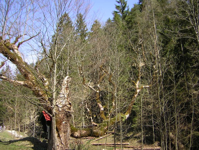 Der Baum wurde durch einen Sturm stark beschädigt! Heute steht nur noch ein Torso. Allerdings wächst daraus eine neue Buche und hält den heiligen Ort am Leben (siehe letztes Foto)