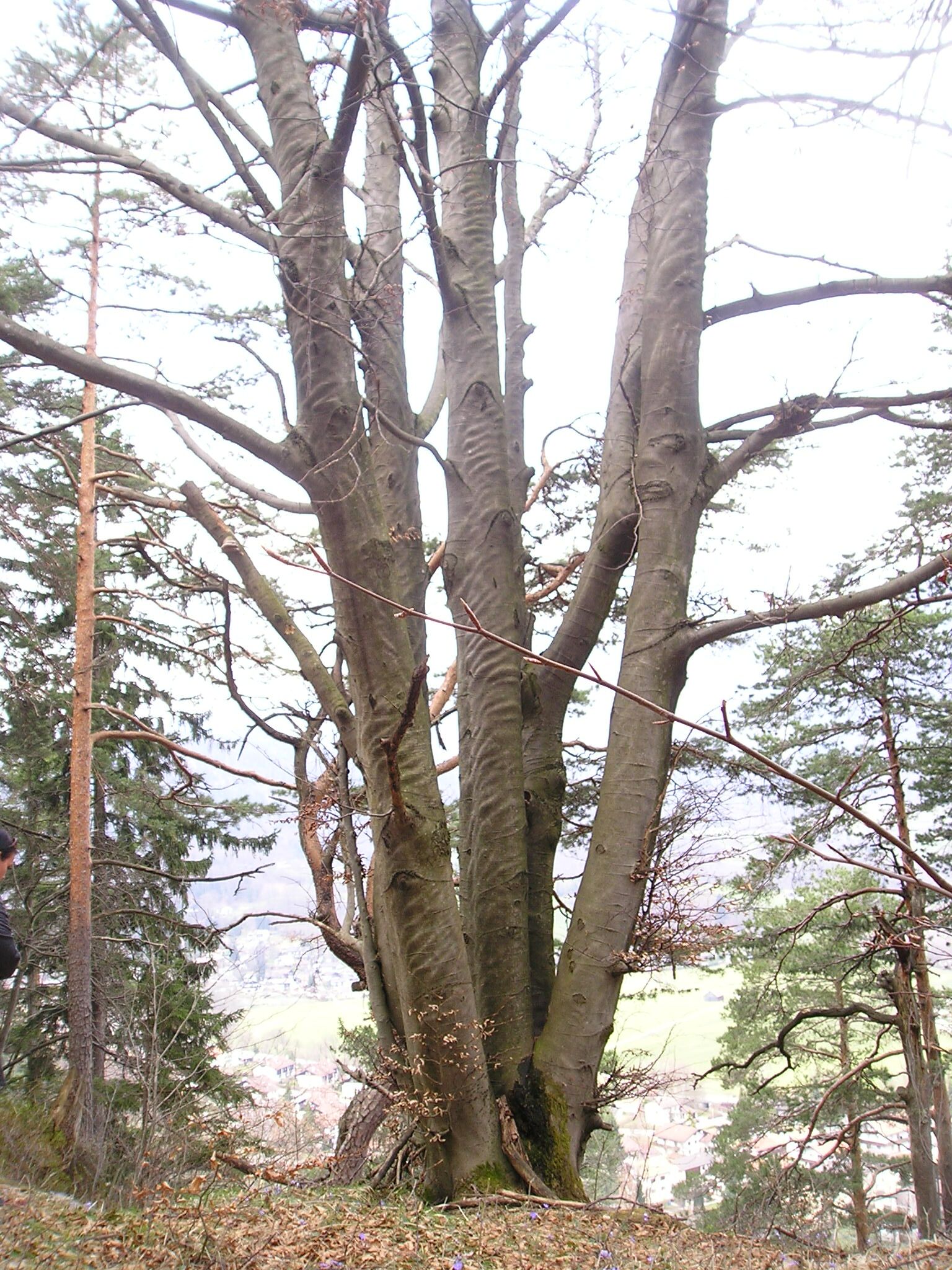 Auf dem Wanderweg vom ehemaligen Berggasthof Schroffen (heute Asylantenunterkunft) zum Kugelbachbauern steht kurz vor der Kreissenhöhle rechts neben dem Weg eine auffällige Buchenfamilie. Alle Bäume dieser Buchengruppe zeigen einen starken Drehwuchs, der besonders durch unterschiedliche Drehrichtungen der einzelnen Bäume auffällt. Zudem sind die Bäume teilweise miteinander verwachsen bzw. “umschlingen” sich. Ein seltenes Naturschauspiel. Was will es uns sagen?