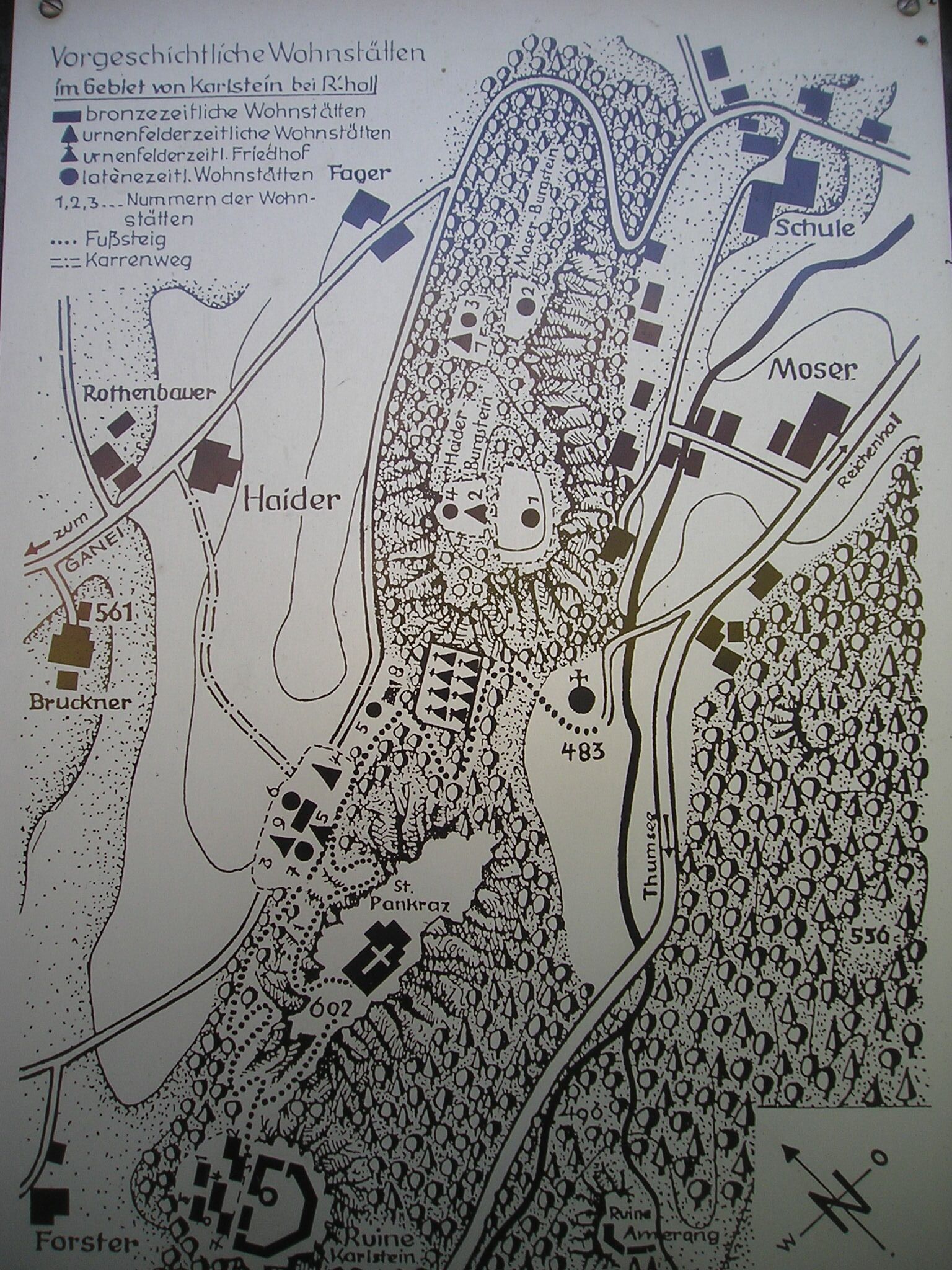 Im Umfeld der Burg Karlstein und des Pangratzfelsens fanden sich keltische Siedlungsspuren, die durch Hinweisschilder dokumentiert sind. Über den Burgfelsen selber ist die Sage über "Drei wilde Frauen" bekannt, die überall im Alpenraum wiederzufinden (u.a. als die Saligen oder saligen Fräulein) sind und auf die keltische Muttergöttinentrinität hinweisen. Nahe Karlsteins - beim Palfnerbauern - finden wir auch das Erscheinen der “Wilden Jagd”.