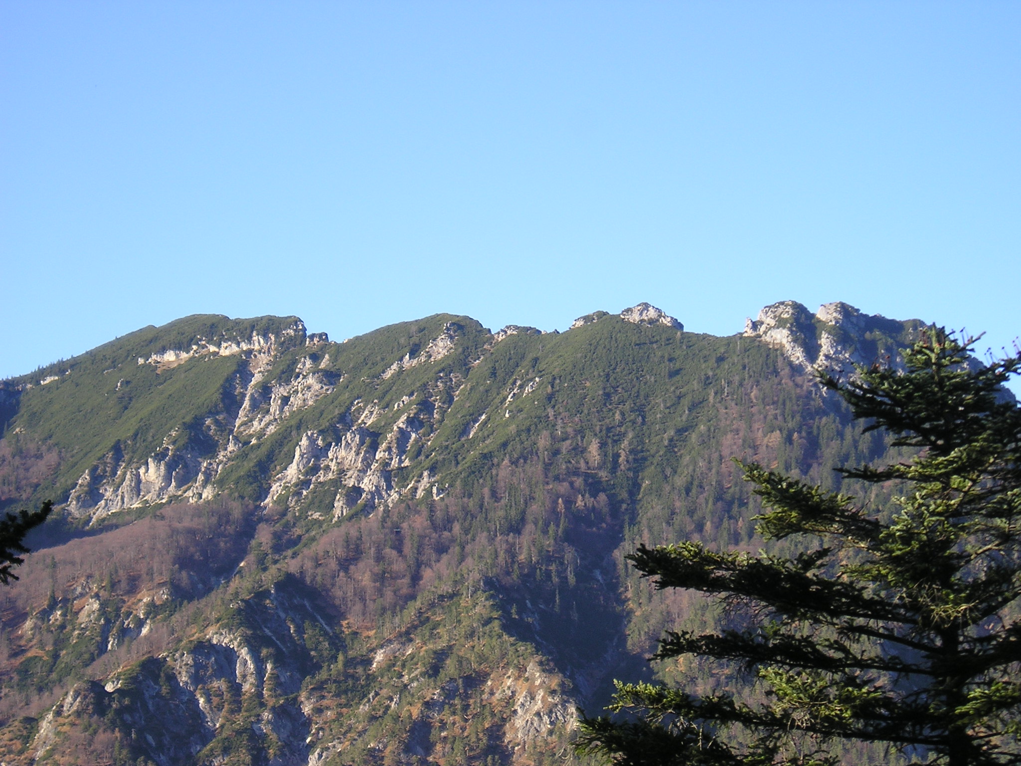 Foto: Aussicht vom Burgstallkopf auf das Lattengebirge mit Steinerner Agnes (Bildmitte) und Teufelsloch (Gratmitte.)