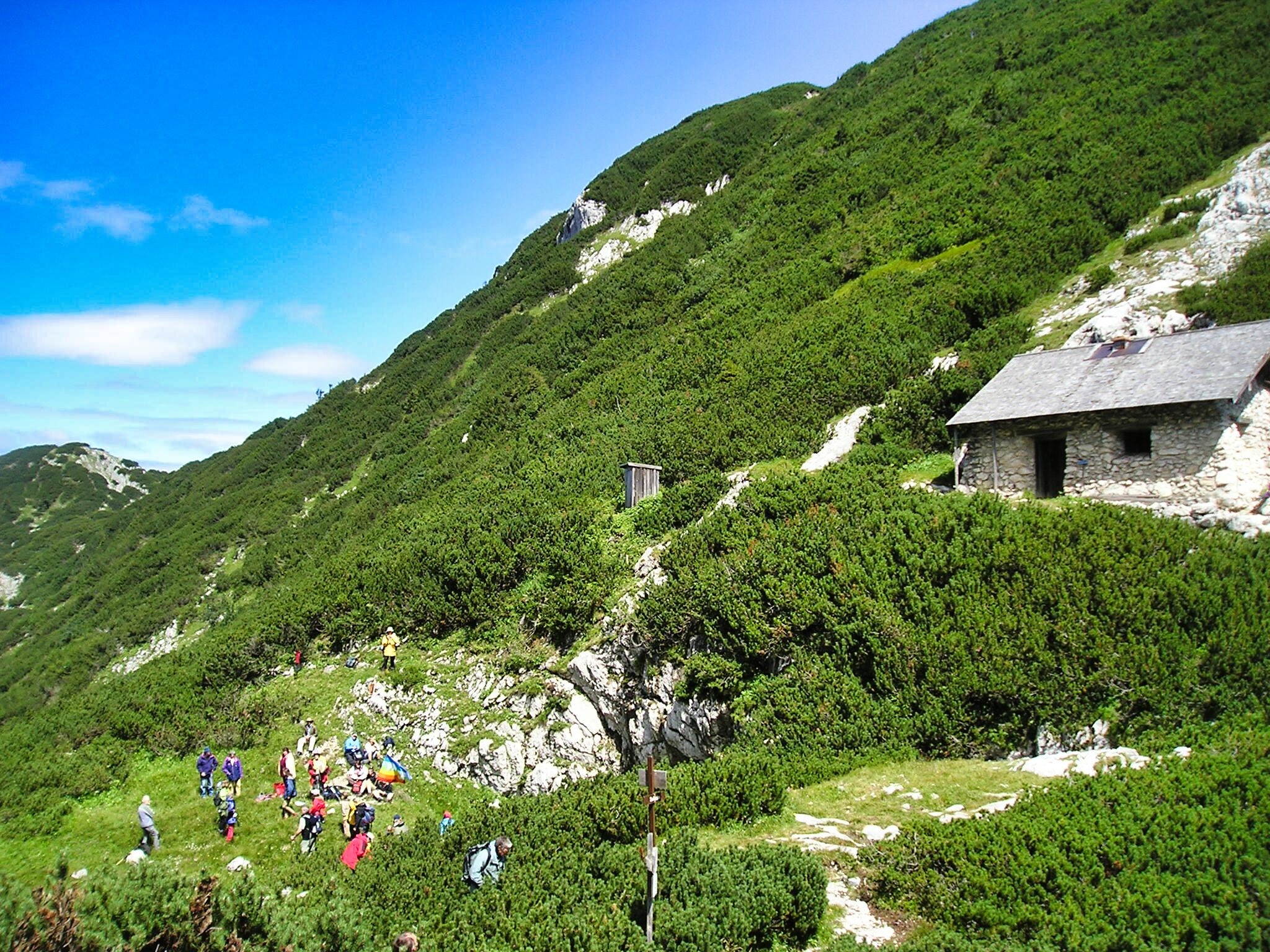 Ich hatte diesen Bergeinschnitt aus meiner Kindheit und Jugend nicht so stark latschenverwachsen in Erinnerung. Wo sollten wir hier einen Platz für ein zu installierendes Medizinrad finden?