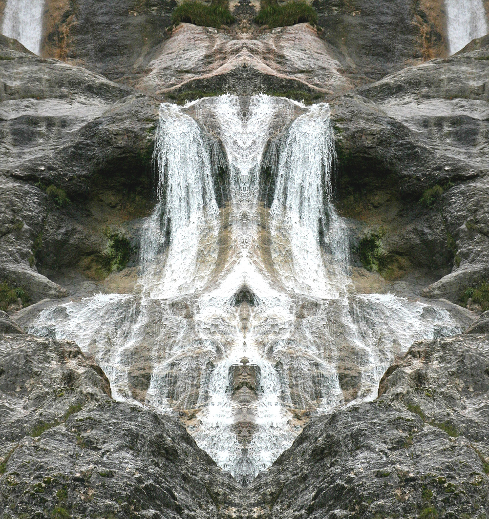 Devas des irdischen und kosmischen Wassers Der eine Krone tragende Königsdeva-Engel zeigt sich mit einem leuchtendem Lichtherzen, das seinen ganzen Oberökrper einnimmt. Der Kopf ist dunkel, damit das strahlende Herz - das Zentrum – deutlicher in Erscheinung tritt. Ebenso lichtdurchflutet sind seine Arme bzw. Flügel, aus denen sich in Fülle in unzähligen Bahnen und Lichtfäden das Lichtwasser in verschiedenen Dichten und Konzentrationen ergießt. Es ist ein grenzenloser und bedingungsloser Fluß des Lichtwassers, der von der Engeldeva-Ebene in einem vertikalen Strom auf der Erde ausgebracht wird. Sein ganzer Körper besitzt die Form eine Kelches, aus dem sich die Fülle ergießt. Auch das Lichtherz selbst ist in das Fließen des Wassers eingebettet und scheint sich aufzulösen. Engel-Devas sind Wesenheiten, deren Wesenkern das Geben, das Schenken und Fließen von Fülle und Segen ist, sie geben bedingungslos und spenden bedingungslos. Die Quelle, aus der sie genährt werden, ist unerschöpflich und gleicht einem reinen Paradies. Der Wasser- und Lichtengel ist verbunden mit der großen Wesenheit im unteren Teil des Bildes. Dieses Wesen ist ein sehr alter Hüter kosmischer Wasserfrequenzen. Sein Kopf und sein Kronenchakra tragen ebenfalls Urlicht in sich. Sein Gesicht ist herzförmig und steht mit dem Herzen des Engel-Devas in Verbindung. Hinter ihm erscheinen große ausgebreitete Flügel, die das Licht des darüber stehenden Deva-Engels in die horizontale Ebene der Erde verteilen. Beide Wesenheiten ergänzen sich, sind miteinander verwoben und ihr Zusammen-Wirken ergibt eine Ganzheitlichkeit und Harmonie Den Kanal (Mittelachse), der die kosmische Achse darstellt, beseelen unzählige kleinere Wasser-Wesenheiten, die mit dem Urlicht in Verbindung stehen. Die dominierenden Herzen der beiden Wesen drücken aus, da das Wasser ein Geschenk der Liebe aus der Schöpfungsquelle ist und durch das Dienen der kosmischen und irdischen Naturdevas zu uns getragen wird.