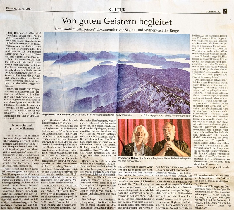 Der Kultfilm von Walter Steffen war der Kino-Erfolg des Sommers 2019 entlang der bayerischen Alpen: Atemberaubende Naturaufnahmen unserer Bergwelten, aufwändig inszenierte Spielszenen, raffinierte 3D-Animationen sowie eine ausdrucksstarke, orchestrale Filmmusik: ALPGEISTER ist großes Kino!