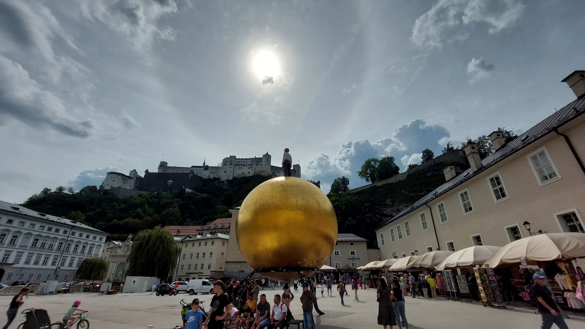 Foto: Das Kunstobjekt Sphaera auch scherzhaft als „Balkenhol-Mozartkugel bezeichnet symbolisiert Salzburgs goldene Zukunft.