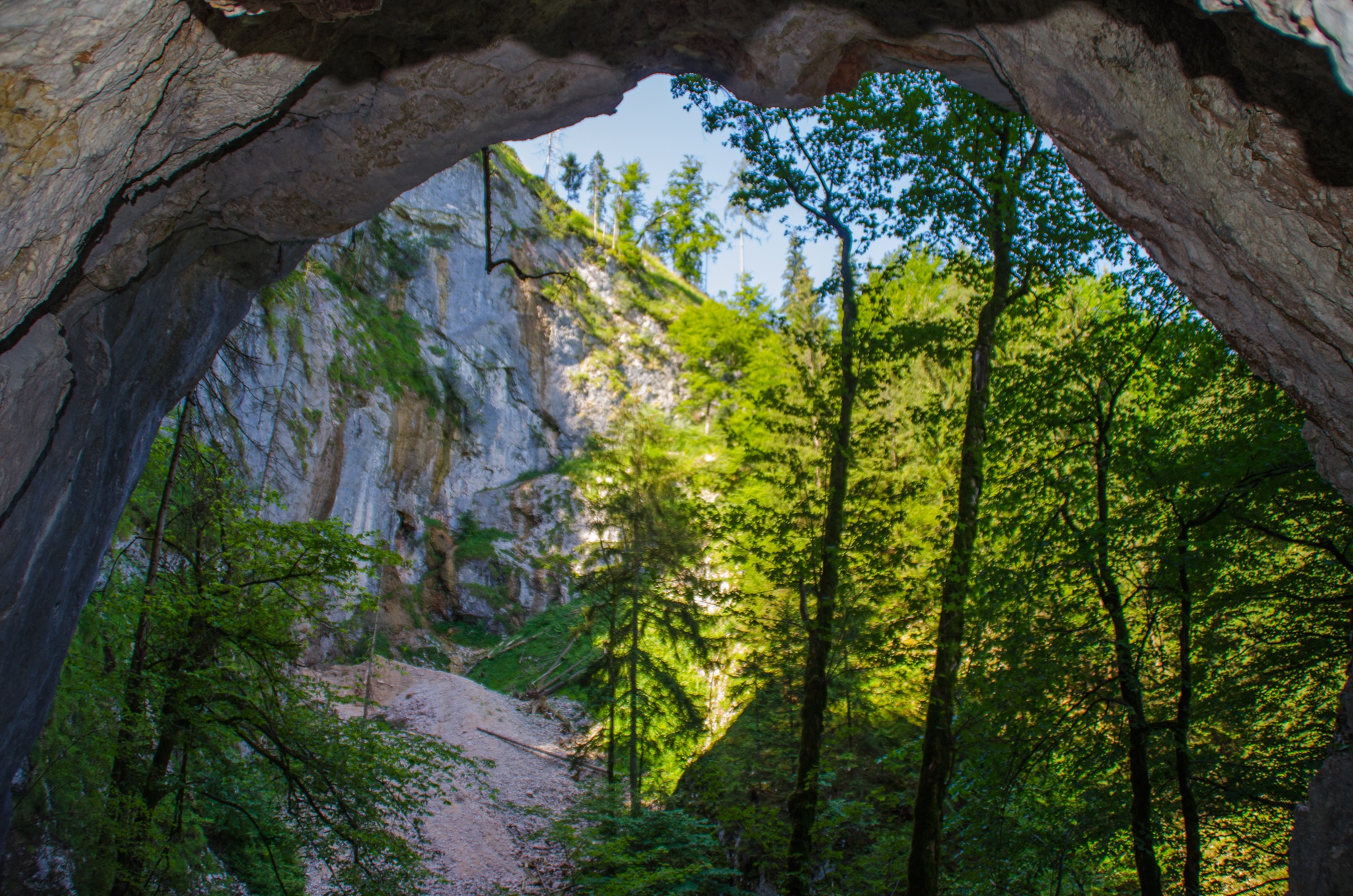 1) Blick aus der Höhle ins Echotal