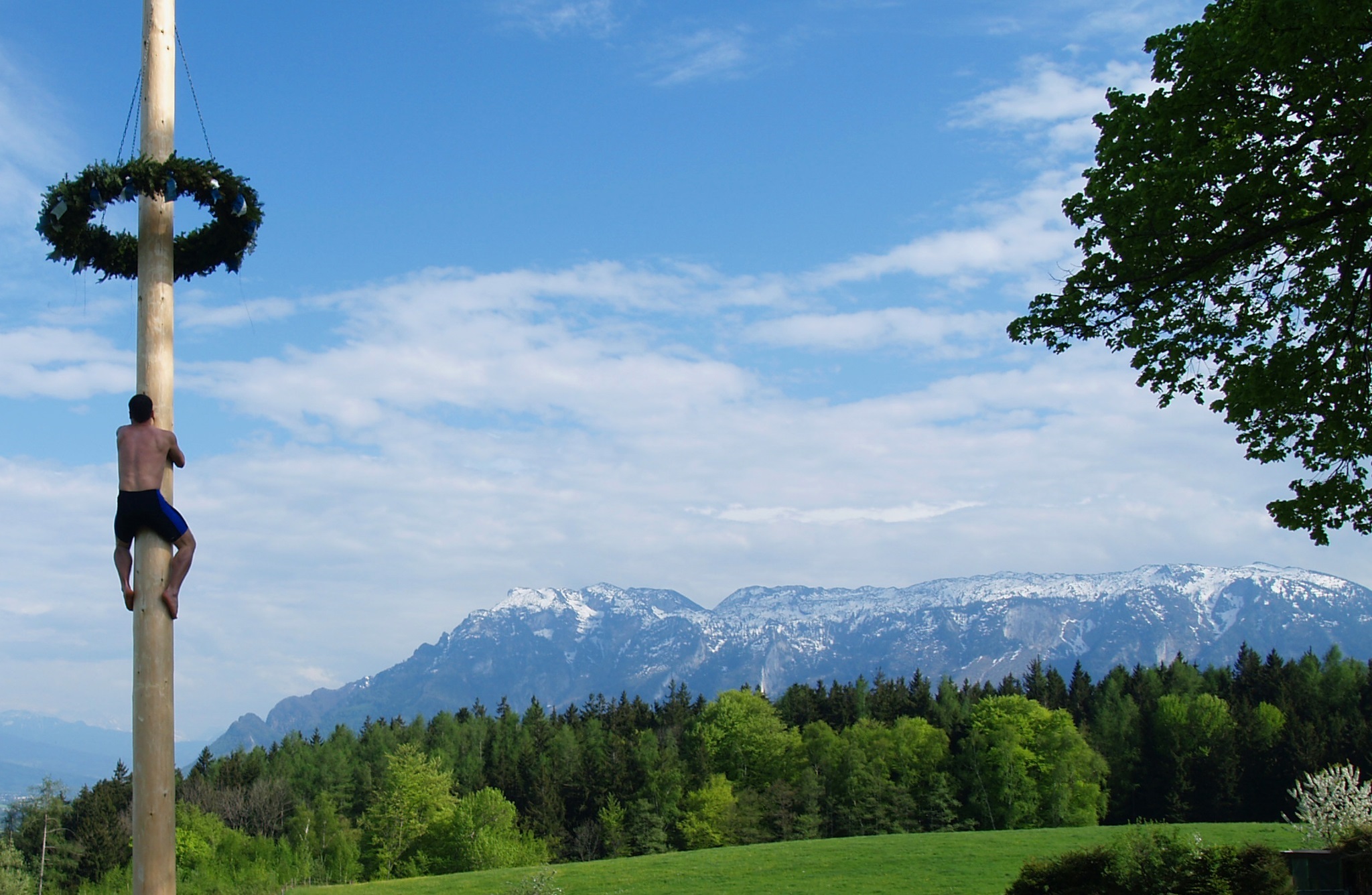 Der Maibaumbrauch lässt sich zunächst bis ins 13. Jahrhundert zurückverfolgen. So wie wir den Brauch heute im deutschsprachigen Raum und in weiteren Teilen Mittel- und Nordeuropas kennen, gehört dazu das regional unterschiedliche Maibaumschmücken, das Maibaumaufstellen am Dorfplatz am oder um den 1. Mai oder zu Pfingsten, das Maibaumstehlen, das Maibaumkraxeln, der Maitanz. Ursprünge lassen sich allerdings auch in ferner Vergangenheit erkennen. So sind bei den Germanen Baumriten zur Verehrung von Waldgottheiten bekannt oder auch Fruchtbarkeitsriten, Kultpfähle zur Verehrung der Erdmutter. Für die Kelten begann mit dem 1. Mai die Sommerzeit und ihr Maibaum fungierte als Opferbaum.