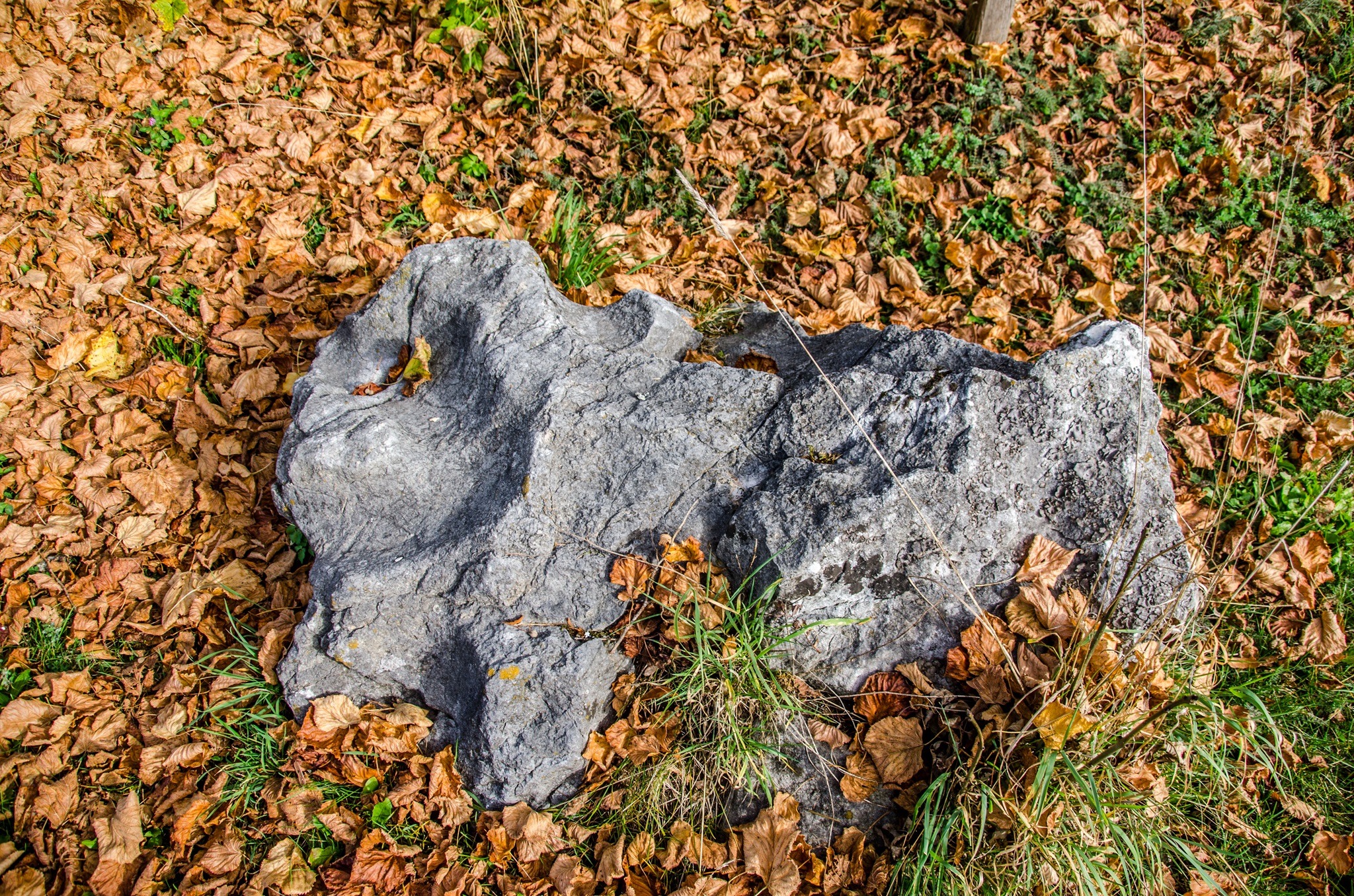 Herzstein im Kirchholz (ein erratischer Block, der bald nach seiner Freilegung bei Kiesabbauarbeiten vor ca. 100 Jahren ein Kultstein wurde.)