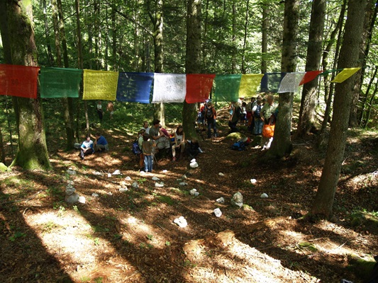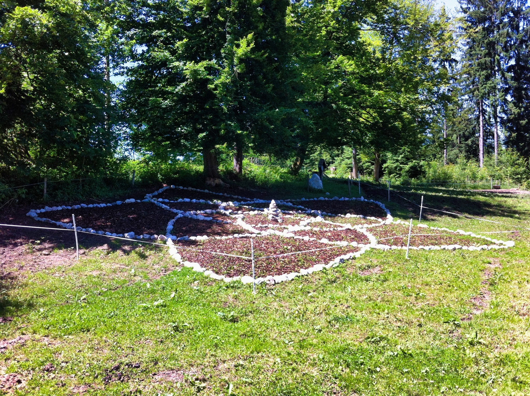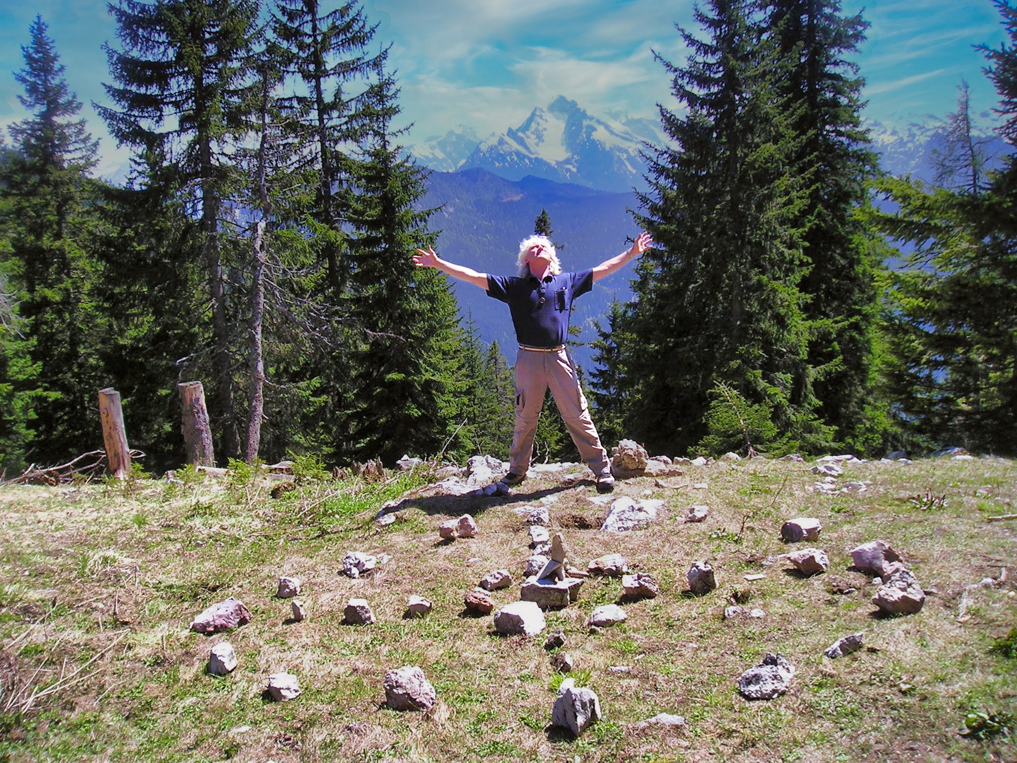 Steinsetzungen sind in der heutigen Zeit ein menschlicher Ausdruck neuer Erdverbundenheit. Als Lithopunktur bezeichnet der Pionier der Geomantie Marco Pogacnik diese Akupunktur der Erde. In der Bioregion Untersberg finden sich in den letzten Jahren zunehmend Steinkreise - meist in der Form des keltischen Rades (in Analogie zu den sogenannten Medizinrädern der nord-amerikanischen Natives) oder seit 2009 auch der Venusblume, die durch Werner Neuner initiiert wurde (Foto 6 Venusblume in der Grasslhöhle).Aber ich fand auch Hinweise auf archaische Steinsetzungen, vielleicht im Sinne eines Schutzkreises, wie auf der verfallenen Karalm (Foto 3) unterhalb der Mittagsscharte gelegen (siehe dazu auch mein Buch “Mythos Untersberg” 2011).