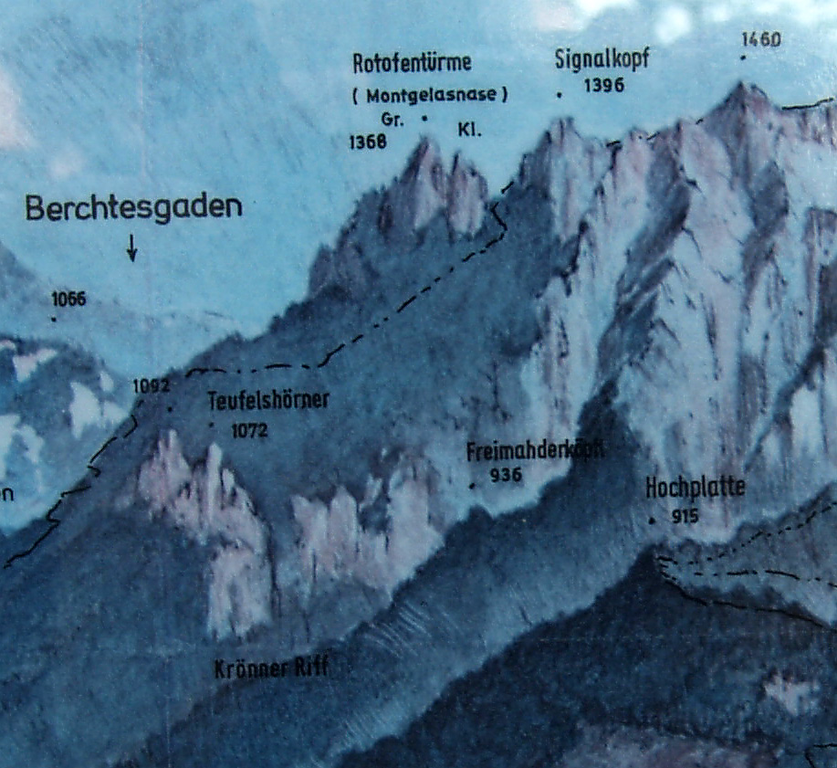 Auf wenigen Karten sind die Teufelshörner am Lattengebirge noch eingezeichnet. Die Schlucht unterhalb wird heute überwiegend als Felsenbach bezeichnet, ist jedoch auch als Löwenschlucht oder Teufelsschlucht bekannt.